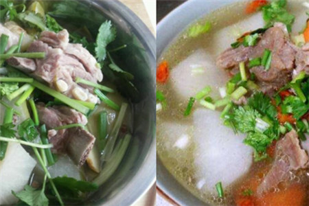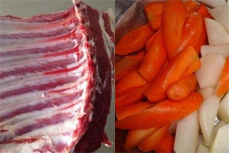 材料:羊排500克,白萝卜200克,胡萝卜100克。