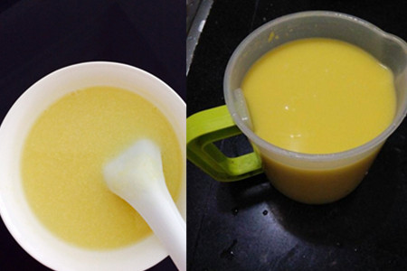 step5. 燕窝炖好之后,将其与处理好的玉米汁进行混合搅拌,随后可根据个人的口味选择加入的冰糖的量。
