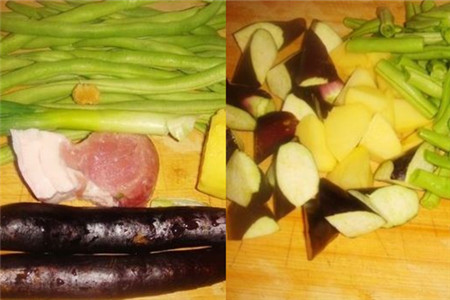 东北乱炖,自然少不了猪肉,而且东北乱炖,对猪肉的挑选是有要求的,一般选择的猪肉是肥肉相间的,这样的猪肉炒出来的菜才会香。然后把四季豆的丝摘掉,茄子的地去掉,土豆的皮去掉,还有各种食材洗干净。我们烧一点热水,把猪肉洗干净,然后再把猪肉切成厚片。四季豆切成段,土豆和茄子切成坨,还有就是葱,生姜大蒜切碎。