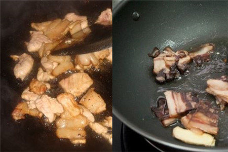 我们在炒锅中加入适量的油,然后开大火烧热。油烧热后,就把猪肉放进锅中,一直炒,直到把肥肉的油炒出来。等到猪肉炒成金黄色时,就可以把葱,生姜,五香粉加进去,翻炒均匀。然后我们再加入适量的豆瓣酱,然后继续翻炒。我们把切好的菜倒入锅中翻炒,再倒入适量的酱油,翻炒一下就可以了。