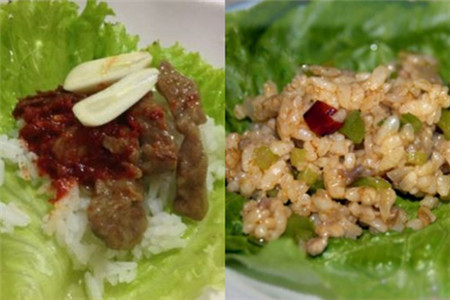 我们把土豆皮去掉以后,就准备一个碗,把土豆放在碗里,然后再把碗放在锅中,蒸20分钟左右。然后我们再把洋葱,腊肠,葱,生姜切成丁。然后再把米饭煮好,米饭煮好后,就将菜和饭混合搅拌均匀。然后将生菜洗干净,就可以把搅拌好的饭和菜包在生菜里面。包饭的吃法也非常的简单,而且做法也不难,在家里我们就可以自己试着做一做。