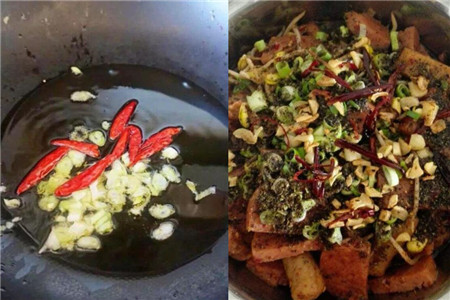 在此我们就以自己搭配的香料为例。首先需要将干辣椒切成小块,尽可能的切多一些,一个盘子左右的分量。然后在锅内加入大量的食用油,等到锅内的油已经开始翻腾的时候,就可以直接将花椒和切好的干辣椒丢入锅中,这个时候我们就可以闻到非常香的味道。当花椒和干辣椒已经开始变颜色的时候,就可以将清洗干净的豆芽菜以及其他的菜丢入锅中翻炒。