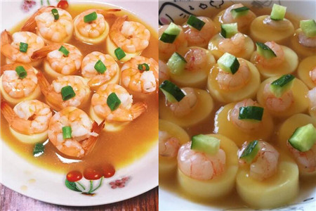 当所有的虾肉都清理干净之后,还需要用清水将虾肉清洗一次。之后我们将日本豆腐放入盘子里,尽可能的摆放整齐,这样可以多放一些。然后将虾肉放在日本豆腐的上面,每一块豆腐上面都需要放置一个虾仁。之后将盘子放入蒸锅当中,开大火蒸日本豆腐虾仁,到了一定的时间之后,即可出锅。出锅之后用青豆或者是香葱来点缀,放在虾肉弯曲部位即可。