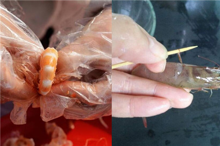 接着将河虾去壳,在去壳的时候需要注意,因为河虾的头部有倒刺,稍不注意会将我们的手划伤,所以在剥虾壳之前可以用刀将所有的虾头去掉。剥完虾壳之后,还需要将虾线去掉,因为虾线当中有很多的脏东西。可以利用一根牙签,将牙签戳进虾肉的背部,然后轻轻的往上一提,虾线就会出来,顺着虾肉背部的纹路一直拉扯,即可将虾线取出。
