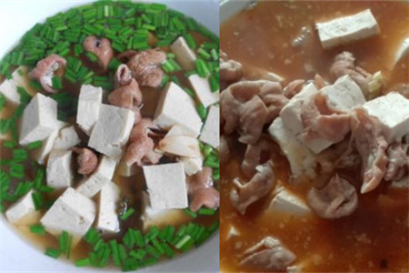等肥肠煮熟后,就把它切成菱形待用。等豆腐的汤汁煮浓时,就可以把肥肠倒在锅里,然后把豆腐和肥肠翻炒均匀。我们把朝天椒切好,然后全部放在锅里,要把朝天椒炒熟。等肥肠和豆腐都煮好后,再加一点糖和葱,用锅铲翻炒均匀就可以出锅了。因为肥肠炖豆腐本身就比较辣,所以肥肠吃起来还可以,味道也不大,相信很多人都会喜欢。