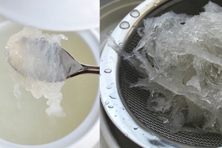 step3、借助镊子,对泡发好的燕窝进行处理,将出现在燕窝内的细毛、杂质等统统去掉,然后用清水进行漂洗。