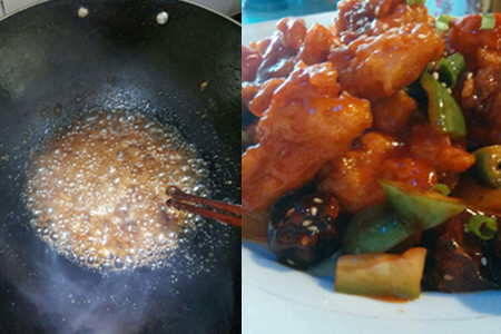 锅底留油,倒入适量的番茄酱,炒熟之后加一些白糖,搅拌之后把肉片倒进去翻炒,尽量把每个肉片都沾到番茄酱,锅包肉好吃的秘密就在这些胡里面,酸甜度调好就可以。