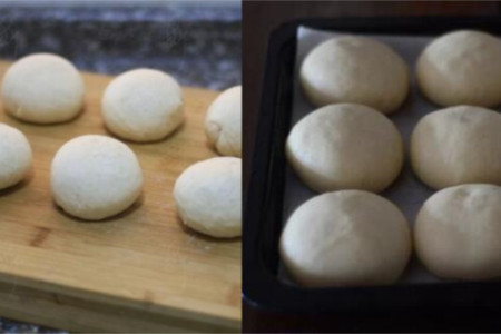 三个小时之后,我们将发酵好的面粉取出,加入适量的蛋液,将蛋液和面粉搅拌均匀,然后我们将搅拌好的面粉揉成一个一个面团,注意搓成面团之后将它们分开放置,不要让它们粘在一起,再把放面团放置在砧板上之前,可以先在砧板上铺一层薄薄的面粉,这样就可以很好的避免面团黏在砧板上。注意我们在制作面团的时候,也不要将面团制作的过大。