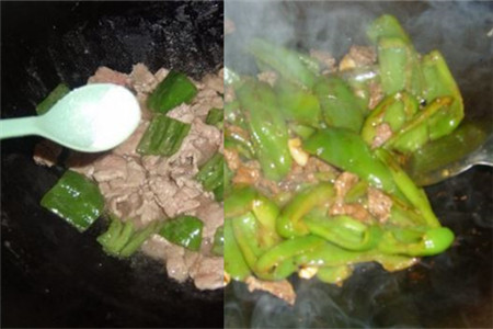 我们也是要把瘦肉炒到变色为止,然后再把它盛在碗里。锅里可能还会留下一点油,要是油不够的话,可以再添加一点油,然后把青椒倒进锅中炒,要把青椒炒焉。等青椒炒焉后,就可以把瘦肉一起倒进锅中炒,然后放入适量的盐,鸡精,翻炒均匀,就可以关火了。我们的青椒炒肉就做好了,只需要把它盛在盘子里就可以了,相信这道菜很多人都会喜欢。