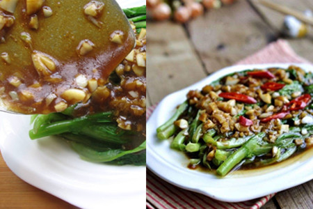 接下来,我们需要在热锅中倒入少许的蚝油,同时在里面加一些蒜末。因为它不仅可以用来提味,同时还有杀菌的作用。然后,我们需要用勺子将它反复翻炒几次,待它慢慢变干之后就可以将它盛出来,之后将它浇在生菜上面。如果我们比较喜欢吃辣,也可以在锅里面放入一些辣椒,这样也可以起到很好的提味的作用。