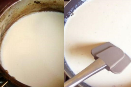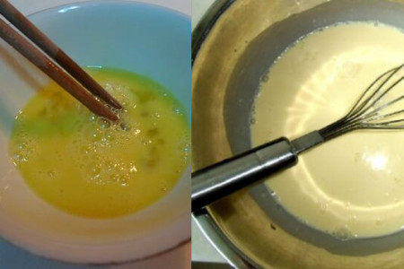 等到锅中的糖完全融化,然后锅中的液体变成焦糖色之后,加入适量的热水。等热水和糖水充分的融合之后,将适量的糖水倒入容器中,然后。将它们放入冰箱中冷冻。接着我们就可以开始布丁液的制作了。我们再取一个干净的平底锅,在锅中加入牛奶和白砂糖,将锅适当的晃动等到牛奶将白砂糖溶化,然后我们将火关掉,让它静置几分钟。