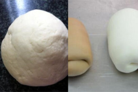 接下来为大家介绍另一种面团的做法,我们在面粉中加入之前泡玫瑰的玫瑰水、适量的黄油和白糖,将它们搅拌均匀之后,就做成了另一种面团,将两种面团都进行发酵一个小时,然后将两种面团都分别捏成小面团。用只有黄油的面团包裹住加入玫瑰水的面团,然后将面团用擀面杖擀成长条,再将长条卷起来,将所有的面团像以上的方法卷好。