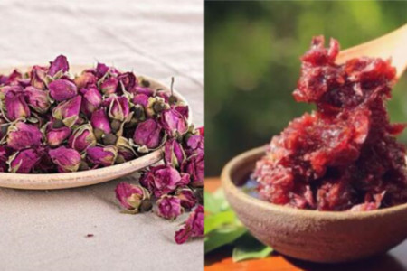接下来就为大家介绍怎么在家中制作云南的特产玫瑰鲜花饼,首先我们取出适量的鲜花玫瑰干,然后将鲜花玫瑰干放入温水中将它们泡软,然后用榨汁机将泡好的玫瑰花干搅碎,然后我们就可以制作出飘香的玫瑰酱了。我们还要在玫瑰酱中加入适量的黄油和白砂糖,将它们搅拌均匀,这就是正宗的云南玫瑰酱,然后我们将玫瑰酱放在一旁备用。