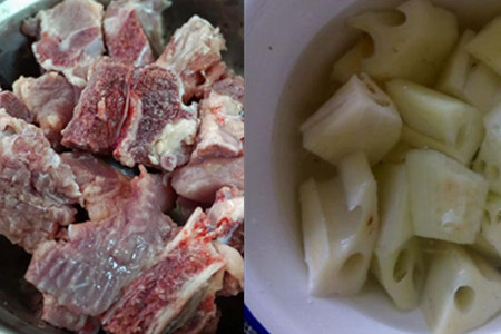 3、把新鲜的莲藕冲洗干净上面的泥沙,再用刨子削掉外皮,特别是莲藕节的地方。把莲藕斜切成小块,再放入清水之中浸泡。水的量要没过莲藕,莲藕泡水既可以适当地去除其中的淀粉,如此这般吃起来会更加脆爽。而且还能避免莲藕暴露在空气中,出现氧化的情况,使莲藕保持原先洁白的颜色。