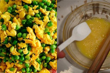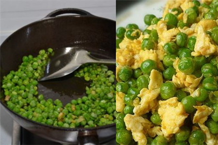 豌豆,我们也要清洗干净,然后装在碗里备用。鸡蛋打散后,加入适量的盐和十三香,然后搅拌均匀即可。在平底锅里放入适量的色拉油,等油烧热后,就可以把鸡蛋液倒进锅中,这时候我们一定要开小火,不要把鸡蛋给煎糊了。把鸡蛋的两面煎成金黄色就可以了,煎好后,用锅铲将鸡蛋切成小块,然后盛在碗里。锅里放再放一点油,将豌豆放在锅里炒。