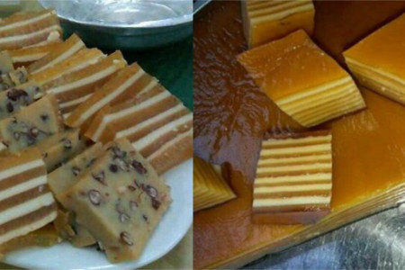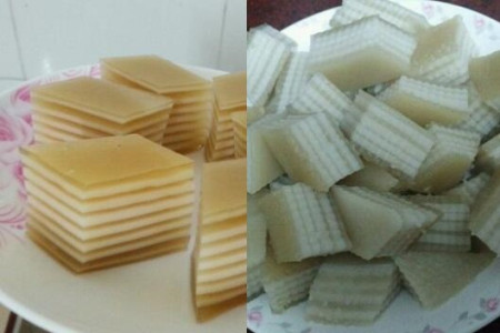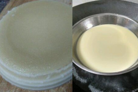 然后我们将两种面糊分别分成若干份,将它们每次依次上锅蒸成面饼,每次蒸差不多三分钟就可以了,建议大家将每份面糊分得均匀一些,这样做出来的千层糕才会更加的好吃。将面糊蒸好之后,我们按照一层黄色的千层糕接着一层白色的千层糕这样依次排列,将所有的千层糕码好之后,我们将千层糕放入冰箱中冷藏一个晚上。