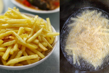 然后,我们需要将它放在盘子中静置一段时间。之后,我们需要再次在锅中倒入一些油,然后待油温慢慢升高之后再将之前炸过一遍的薯条再次放入锅中复炸。我们之所以要再炸一遍,是因为这样可以让它的外皮变得比较脆,而且里面的口感也会比较丰富。