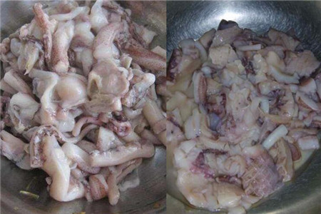 制作之前,我们需要尽可能的购买一些新鲜的鱿鱼,因为新鲜鱿鱼的口感才更加好,弹性也会更好一些。有很多的人在购买鱿鱼的时候,都只会购买一些鱿鱼须,这些也就是鱿鱼的脚,不过这样的鱿鱼须都属于死掉的生鲜食品,所以并不是特别的新鲜。购买了新鲜的鱿鱼之后,我们需要将鱿鱼切成适合的大小,可以先将鱿鱼的脚切掉,然后再将身体切成块。
