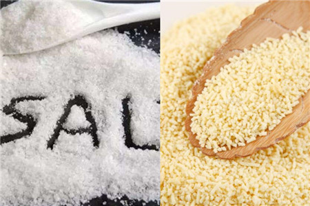 接着我们就需要准备好食用盐和一些鸡精,其实这些佐料都是用来制作韭菜炒鱿鱼的一部分。韭菜炒鱿鱼比较特殊,并不是在制作的过程中加入这些调味料,而是在炒熟之后倒入一种类似于酱料的调味料,然后翻炒几下即可出锅。所以我们准备好的食用盐和鸡精就是用来制作酱料的调味料,当然不仅仅只是这两种,还需要准备一些胡椒粉和生抽、料酒等。