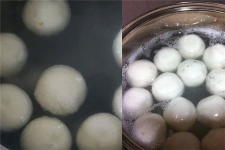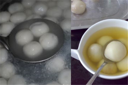 汤圆下过后,还需要把水煮开。等水再次沸腾以后 我们还需要加一点冷水在锅里,给锅降一下温。继续用下火煮,等水再次大开以后,还要加一点冷水在锅里,用火继续煮。我们这次就等汤圆煮开后,再浮起来了,等汤圆全部浮起来后,就可以关火了。我们根据家里的人数,准备好碗,然后要呈双数放在碗里。吃的时候可以根据自己的口味,然后放适量的糖。