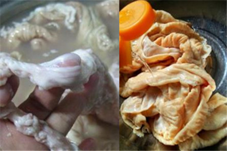 我们要是想把肥肠洗干净,还是有很多方法的。我们家里都会有淘米水,把买回来的肥肠浸泡在淘米水里面,然后把肥肠翻一个面,撕下肥肠的油和杂质。我们还可以烧一点热水,把油脂撕下来后,就用温水反复的冲洗干净。然后我们再用白醋洗肥肠,相信会洗得更干净。洗得时候,我们要反复的搓洗,这样会洗得更干净。要是还有味道,也可再用盐洗几次。