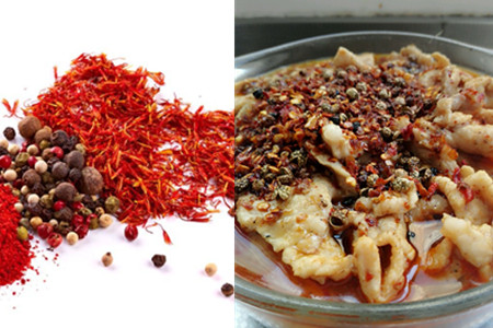 与此同时,我们还需要准备一些调味品,比如辣椒和花椒,它可以让整道菜的味道得到升华,同时也可以让整道菜更加的新香可口。我们需要将这些食材提前放入锅中炒制一遍,然后要将事先炒制好的这些佐料放到水煮肉片上面。