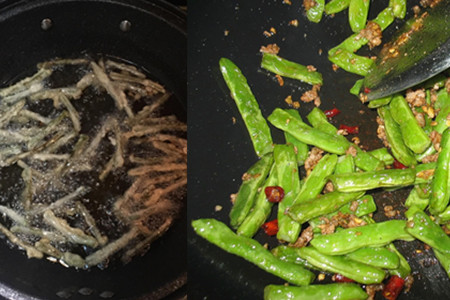 我们之所以要将它再次油炸一遍,是因为这样可以让它的口感更加丰富。接着,我们需要在锅中倒入少许的油,并将油炸过的四季豆放入锅中翻炒,同时再将之前准备好的肉馅放入锅中。一段时间之后,我们就可以将它盛出来食用了。