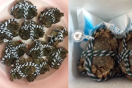 青蟹是活的时候,我们肯定要将它们固定在一个地方,防止它们跑掉。因此我们可以用绳子把青蟹捆住,之后放在冰箱里面,但是要注意冰箱的温度要在五摄氏度和十摄氏度之间。这样青蟹才不容易死。
