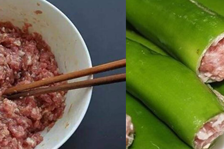 皮青椒主要的制作原料就是辣椒、肉馅,因为要在辣椒里放一些肉馅,所以我们买辣椒的时候尽量买一个个头大的,比较容易放肉馅。如果害怕吃辣,我们可以把辣椒的根部切掉之后,用剪刀剪去里面的那些辣椒筋。猪肉尽量买瘦肉,然后切成肉馅,切好的肉馅放在大碗里,加一些淀粉、精盐和蚝油,再放一些香葱末,加适量香油充分搅拌。