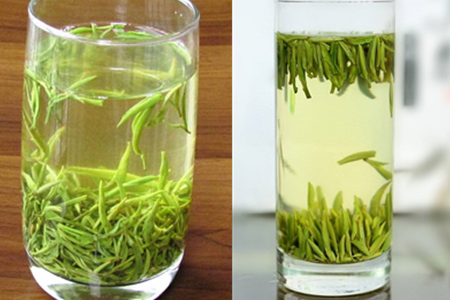 碧螺春茶的汤色是一种碧绿色的,而且很清澈、很干净,我们可以看到它十分明亮。但是龙井茶在碧绿中会透露出一些黄色,看起来十分朦胧。它的叶子也是很细嫩的。因此这两种茶泡起来汤色也是有着比较明显的不同。