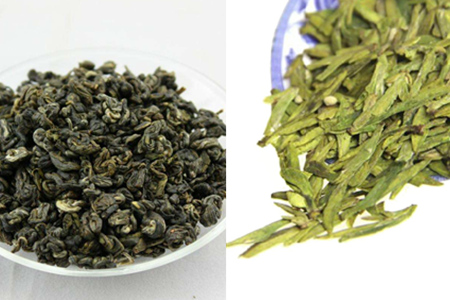 碧螺春的颜色大部分都是绿色的,但是龙井茶绿色里面会带一点点黄色。有一点像糙米的颜色。因此我们单纯地从这两种茶的外表也可以简单地辨认出这两种茶的差别,从而挑选出自己喜欢的那款茶叶。