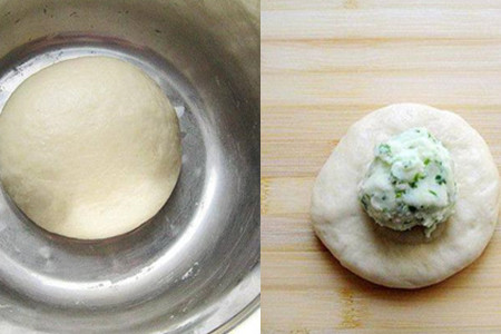 食材:面粉100克、玉米油15克、酵母2克、白糖20克、水45克、玉米淀粉50克、盐3克、小葱末12克、猪油13克。