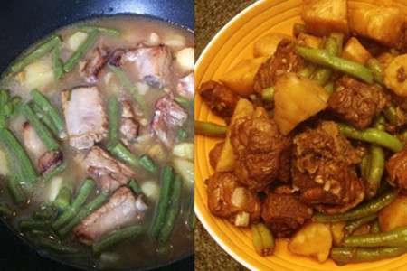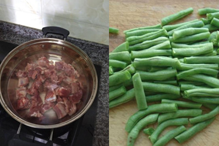 6、这时候往炒锅之中淋入些许的老抽进行调味,把豆角段加入其中。用锅铲翻炒至豆角断生后,往里加入些许的豆瓣酱翻炒均匀。紧接着把准备好的土豆块倒入炒锅之中,再往里倒入足量的清水。大火将汤汁烧开冒泡后,再改为小火慢炖四十分钟。汤汁变得浓稠后,撒上些食盐、鸡精翻炒均匀便可食用了。