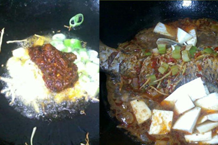 食材:鲤鱼800克、杏鲍菇2个、豆瓣酱、葱姜蒜、老抽、白糖、白醋、醪糟、盐、油。