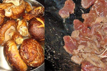 8、紧接着可以把驴肉倒入瓦煲中,往里加入适当量的冷水,再把马蹄和冬菇加入其中。中火炖煮五十分钟,这时候再把红萝卜块和腐竹段加入瓦煲中,继续炖煮二三十分钟便可关火食用了。