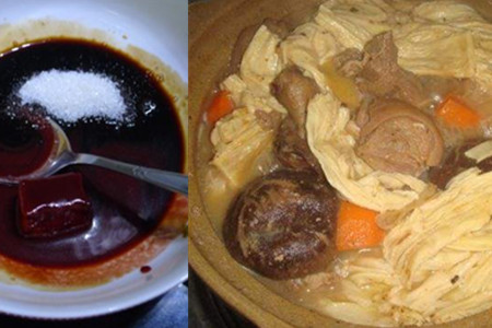 因为腐竹和胡萝卜较容易煮熟,所以要后面放入。如果家里没有瓦煲,也可以使用砂锅或者直接用炒锅来烹饪。