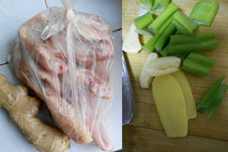 step4、取出经过处理的鸡翅、姜片和葱段,采用凉水入锅的方式,将其全部放入备好的锅中。