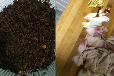 食材:梅干菜200克、五花肉400克、干红椒、生姜、大葱、大蒜、十三香、白糖、老抽、食用油。