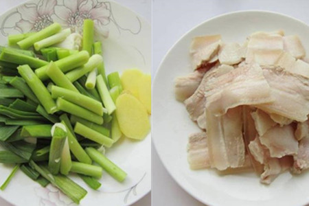 食材:五花肉300克、蒜苗200克、豆瓣酱、甜面酱、花椒粒、豆豉、姜、白糖、料酒、鸡精。生姜削皮切片,蒜苗洗净切成寸段。煮锅洗净上灶,加入小半锅凉水,将五花肉洗净下锅,再放入姜片和花椒粒,烹入适量料酒,开大火煮至五花肉熟透。五花肉煮熟之后,将其捞出锅,切成薄片。