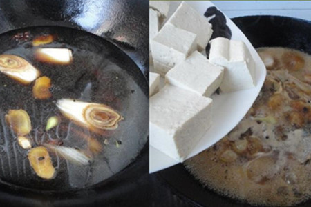 炒锅洗净置于灶上,倒入适量油烧热,将八角和葱姜蒜下锅爆香。葱姜蒜和八角爆出香味之后,往锅中烹入适量酱油和料酒,再兑入适量清水,搅匀。接着将鲶鱼块下锅,大火煮开后,再加入豆腐块,小火炖10分钟,再转为大火将汤汁煮干,调入适量食盐即可。宰杀鲶鱼的时候,要把鱼卵清除干净,因为鱼卵有毒,是不能食用的。