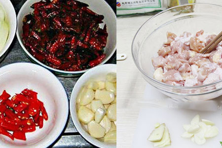 1、朋友们需要选择比较新鲜的鸡肉,然后将其切成小块,加入淀粉、盐、料酒等进行腌制。之后就要准备好姜片以及蒜末。接下来朋友们就要将干辣椒用剪刀剪成小段,这样烹饪的时候让鸡肉更入味。
