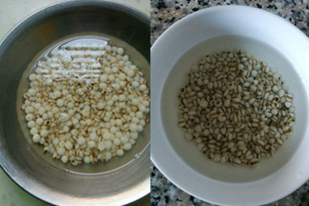 step1、处理红豆和薏米,先选择用清水进行浸泡,时间控制在两个半小时左右。