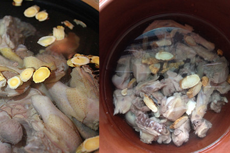 step3、将处理好的鸽子放入备好的砂锅中,倒入适量的水,进行加热直至锅内的水沸腾。