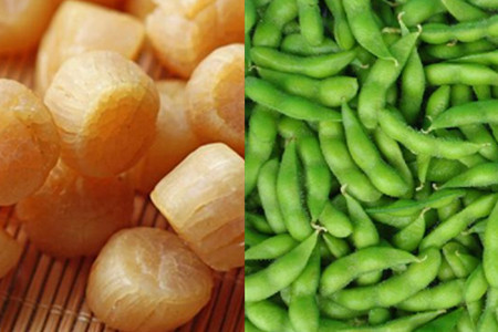 油锅里面倒入适量的食用油,等到油烧热了时候,就将干贝放进去翻炒,主要不要把火候开的太大了,不然干贝容易糊锅,选择使用中小火比较合适,翻炒3分钟左右,就倒入毛豆进去一起翻炒。