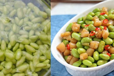 选择新鲜的毛豆荚,大家在挑选毛豆的时候,尽量选择颗粒比较饱满的,不然剥离出来里面的豆子肉是不饱满的。将豆荚的外壳去除,上面一层白色的外衣用清水冲洗干净,当然市场上也有很多已经剥好的毛豆,你如果想更加方便一点,可以直接买这种。