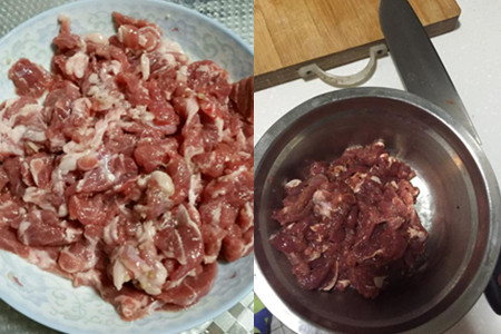 2、先将从早市买回家的新鲜的羊肉,放在流水下冲净表面的污血和杂质。再摆在菜板之上,用刀切成片状。把羊肉片装入一个小碗之中,再往里加入些许的酱油、淀粉、香油进行均匀地抓捏,置于一边腌制一会儿。这样既可以去除掉羊肉的腥味,又可以使羊肉保持嫩滑的口感。