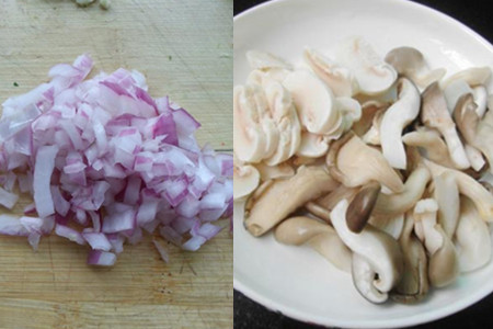1、准备的食材有洋葱、蘑菇、面粉、奶油、黄油、黑胡椒。