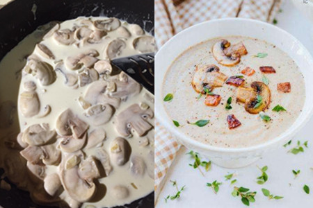如果觉得这道汤品过于地浓稠,可以适当地减少些面粉的使用量。如果想要口感更加的细腻嫩滑,可以把洋葱和蘑菇用料理机打碎。