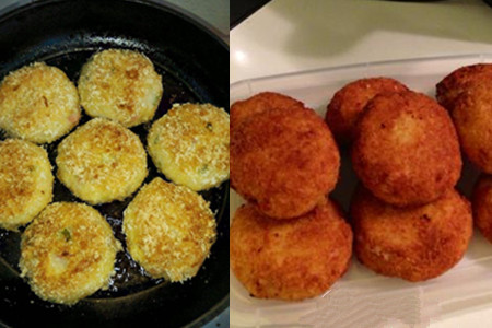 如果觉得饼太油腻了,可以用厨房用纸吸掉些许的油。因为土豆泥和馅料本身都是熟的,所以炸制的时间不用太长。