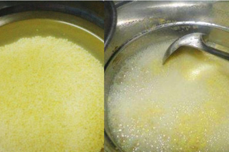 难道小米粥第一次开锅后,我们要不断地用锅勺去搅动它,顺时针搅,这样子也能增加小米粥的粘稠度,如果还想要更粘稠的小米粥,那我们可以放一把食用碱进去,然后再不停的搅均匀,放食用碱的目的是为了增加小米粥的粘稠性。如果不想要吃太稠的小米粥的朋友也可以选择不加,其实这个时候小米粥只要再煮一会,然后再放一点糖就可以喝了。
